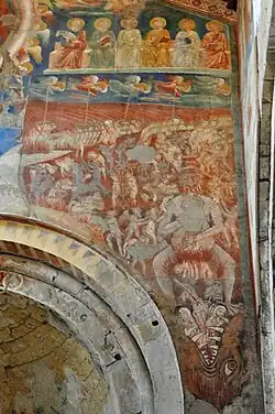 Das Fresko weist sowohl ikonographisch als auch kompositorisch große Ähnlichkeiten mit dem Jüngsten Gericht von Giotto in der Scrovegni-Kapelle in Padua auf.