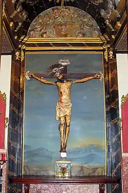 In der Blutkapelle ist ein gekreuzigter Christus zu sehen. Die im Hintergrund zu erkennende Landschaft wurde von Miguel Llinàs geschaffen.