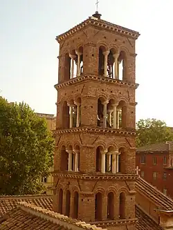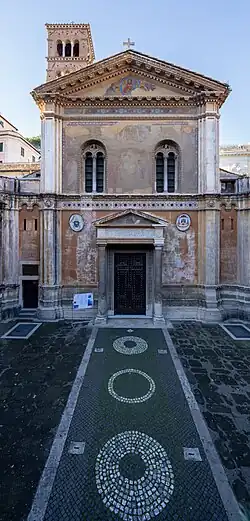 Gegen Ende des 8. Jahrhunderts ließ Papst Hadrian I. (772–795) eine Restaurierung durchführen und das Langhaus der Kirche um zwei Joche nach Osten erweitern und mit einer erneuerten Fassade versehen. Gleichzeitig wurden die noch aus der antiken Apsidenhalle stammenden Arkadenpfeiler durch spätantike Säulen mit Palmettenkapitellen des 4. Jahrhunderts ersetzt.[6] Ende des 11. Jahrhunderts entstand als Anbau an die Mitte des linken Seitenschiffs die Kapelle zu Ehren der hll. Pastor und Johannes der Täufer, im 16. Jahrhundert umgewidmet und neu gestaltet als Grabkapelle der Familie Caetani; mit der prächtigen Marmorarchitektur und Mosaikausstattung gehört sie zu den reichsten Familienkapellen in Rom. Der fünfgeschossige Campanile stammt aus dem 12./13. Jahrhundert.