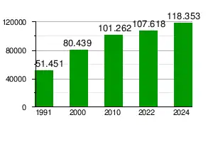 Quelle: IBGE (Angaben für 2024 sind lediglich Schätzungen). 33 % der Bevölkerung waren im Jahr 2010 Kinder und Jugendliche bis 15 Jahre. 97,88 % lebten 2010 im städtischen und 2,12 % im weitläufigen ländlichen Raum. Santana ist das flächenmäßig kleinste Munizip in Amapá. Die Analphabetenquote lag 2010 bei den Erwachsenen über 25 Jahren noch bei 13,55 %.[5] Seit der letzten Volkszählung 2022 wuchs die Bevölkerung um fast 11.000 Einwohner.
