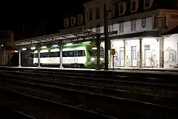 Regionalzug im nächtlich erleuchteten Bahnhof von Santarém, September 2012