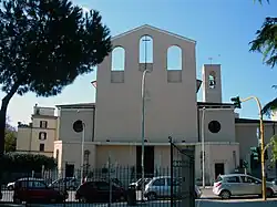 1936 wurde die Kirche erbaut. Clemente Busciri Vici hatte sie mit drei Längsschiffen, schmalen Seitengängen und einem etwas schräg liegenden Dach entworfen.