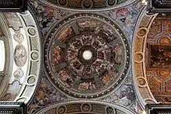 Belisario Corenzio bemalte auch das Innere der Kuppel zwischen 1630 und 1640 mit zwölf „Stadtpatronen Neapels“ und mit „Heiligen und musizierenden Engel“ in Tambour und Gewölbe. Die gesamte Komposition wurde jedoch während der Restaurierung in der Mitte des 19. Jahrhunderts von Nicola La Volpe stark überarbeitet und zum Teil neugemalt.[5]