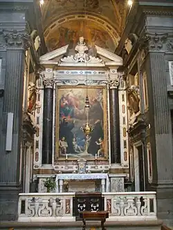 Der Hochaltar befindet sich auf einem erhöhten Boden mit wenigen Stufen und ist durch eine Balustrade (1669) vom Kirchenschiff getrennt. Er wurde am 29. August 1649 in Anwesenheit von Kardinal Carlo de’ Medici geweiht. Sein heutiges Aussehen geht auf die Renovierung von 1675 zurück. Er besteht aus einer erstaunlichen Kombination kostbaren Marmors und wurde von Pierfrancesco Silvani entworfen: Eine konkave Kulisse gipfelt in einem imposanten silbernen Ziborium, dem einzigen Überbleibsel des monumentalen Werkes der Familie Torrigiani anlässlich der Heiligsprechung von San Gaetano und dem Werk des florentinischen Goldschmieds Benedetto Petrucci. Unter den verwendeten Marmoren befinden sich der rote aus Frankreich, der Lapislazuli, der griechische Grüne, der gelbe aus Siena, der antike gelbe aus Numidien usw. An den Seiten des Altars befinden sich die Wappen von Kardinal Domenico Maria Corsi und Marchese Giovanni Corsi (die Corsi waren eine weitere Adelsfamilie mit einem Palast in der Via de’ Tornabuoni).