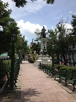 In der Mitte des Platzes befindet sich das Denkmal für Francisco Vicente Aguilera, einen der damals wohlhabendsten Plantagenbesitzer Kubas, der 1867 das Revolutionäre Komitee von Bayamo gründete, welches das Ziel hatte, Kuba in die Unabhängigkeit von Spanien zu führen und dessen Aktivitäten schließlich in den Zehnjährigen Krieg mündeten.