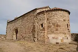Die einschiffige Kirche besitzt einen Glockengiebel (espadaña) über der portal- und schmucklosen Westfassade; sie endet in einer halbrunden Apsis. Im nur von einem offenen Dachstuhl überspannten fensterlosen Kirchenschiff sind acht bemerkenswerte Kapitelle aus dem 11. Jahrhundert mit den Darstellungen von Adam und Eva sowie von Vögeln, Löwen und Pflanzenmotiven zu sehen. Die Apsis ist kalottengewölbt und hat ein kleines Fenster.