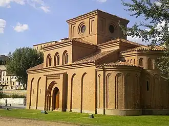 Die Kirche ist – mit Ausnahme des später hinzugefügten oberen Mittelteils der Westfassade – vollständig aus Ziegelsteinen errichtet. Die Techniken des Brennens und des dekorativen Vermauerns von Backsteinen waren im Norden der Iberischen Halbinsel zwar schon von den Römern verwendet worden, doch waren sie in der Folgezeit in Vergessenheit geraten, bis sie in den Jahren der Rückeroberung (reconquista) Andalusiens durch wandernde Handwerker wieder in den Norden vordrang. Vor allem in Toledo, später dann auch in Zamora, Toro und Sahagún entstanden bedeutende Kirchenbauten aus Ziegelsteinen im Mudéjar-Stil.