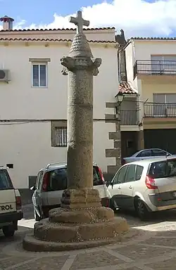 • Eine auf einem abgetreppten runden Sockel stehende Gerichtssäule (rollo oder picota) aus dem beginnenden 16. Jahrhunderts kann als Zeichen des Bürgerstolzes und der rechtlichen Eigenständigkeit des Ortes interpretiert werden.