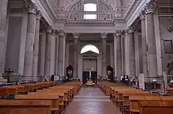 Der einschiffige Innenraum ist fast völlig in Weiß und Grautönen gehalten und basiert auf einem lateinischen Kreuz mit sechs Seitenkapellen – drei auf jeder Seite. Trotz einer gewissen Kühle gilt er als eine der schönsten Raumschöpfungen Vanvitellis und wird von 44 Säulen korinthischer Ordnung rhythmisiert. Die Art, wie die Seitenkapellen von den mächtigen Säulen gerahmt werden, erinnert an die Kapelle des Palastes von Caserta, die ebenfalls ein Werk von Luigi Vanvitelli ist. Die Kuppel wurde von Carlo Vanvitelli errichtet und erreicht 67 m Höhe.