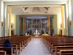 Vom Kirchenraum ist mit einer Glasscheibe eine Werktagskapelle abgetrennt.