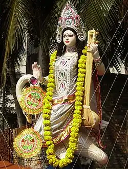 Sarasvati (Sanskrit सरस्वती Sarasvatī f., „die Fließende“,[1] auf Bali Saraswati) ist eine indische Göttin der Weisheit und Gelehrsamkeit und eine der populärsten hinduistischen Göttinnen. Im Tantra genießt sie als blaue oder dunkle Sarasvati Verehrung.[2] Sie soll sich aus der vedischen Sprachgöttin Vac entwickelt haben.