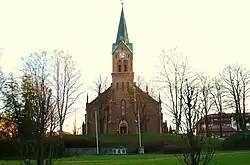 - Die Stadtkirche von Sarpsborg, die 1862 im neugotischen Stil erbaut wurde.