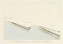 „Durchschnitt der Pesterwitzer und Zaukeroder Steinkohlenflötze“ mit dem Sauberg in der Mitte (Abbildung aus dem Jahr 1799)