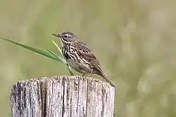 In den verbuschten Bereichen finden sich Sumpfrohrsänger, Feldschwirl und Dorngrasmücke. Im lockeren Buschwerk und in Einzelbüschen leben die seltenen Raubwürger und Neuntöter. Brache-Bereiche mit Disteln und Stauden sind Sitzwarten von Bluthänfling (selten), Distelfink, Schwarzkehlchen und Braunkehlchen. Eine Besonderheit sind die Blaukehlchen, die weiß- und rotgesternt vorkommen. Der Wiesenpieper und die Feldlerche sind im strukturarmen Grünland heimisch. Die Rabenkrähe und der Eichelhäher haben infolge des hohen Maisanbaus außerhalb des Gebiets deutlich zugenommen. Die Elster brütet inzwischen nahe am Gebiet und taucht zunehmend hier auf. Seit einigen Jahren überfliegt der Kolkrabe das Gebiet.