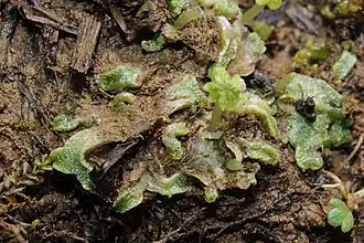Die Geschlechterverteilung ist autözisch. Die Antheridienstände befinden sich dorsal entlang der Thallusmitte. Die Träger der Archegonienstände entspringen den Thallusspitzen und sind bis 1 Zentimeter hoch. Das Köpfchen (Carpocephalum) mit den Sporenkapseln ist 3- bis 5-lappig. Reife Sporen haben eine Größe von 60 bis 70 Mikrometer und sind mit groben, halbkugeligen Papillen besetzt.