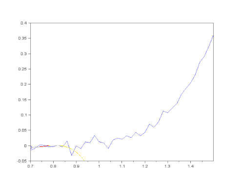 • gelbe Kurve: Regressionspolynom, das für Bestimmung des aktuellen Punkts verwendet wird;