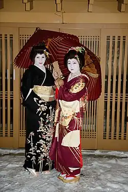 - ↑ Alex Martin: Geisha cuts into kimono market. In: The Japan Times Online. 3. Juni 2011, abgerufen am 2. Dezember 2014 (englisch).