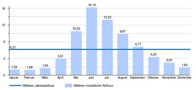 - ↑ Martin Pfaundler, Rolf Weingartner, Robert Diezig: „Versteckt hinter den Mittelwerten“ – die Variabilität des Abflussregimes. In: Hydrologie und Wasserbewirtschaftung (HyWa). Jg. 50, Heft 3, 2006, S. 116–123, hier Tabelle auf S. 119 (Download [PDF; 3,2 MB; abgerufen am 3. November 2024]). Abrufbar unter Gesamtes HyWa Heft 3, 2006..
