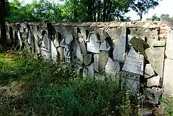 In zahlreichen Städten unter der Besatzung des nationalsozialistischen Deutschlands wurden jüdische Friedhöfe geschändet, so in Babyn Jar. Während der deutschen Besetzung Kiews (Ukraine) kam es in der unmittelbaren Umgebung zu Massentötungen, vor allem der jüdischen Bevölkerung unter der Verantwortung des Heeres der Wehrmacht. Den Einsatzgruppen der Sicherheitspolizei und des SD fielen am 29. und 30. September 1941 mehr als 33.000 Juden zum Opfer.[20] Nach Zeugenaussagen wurde im Jahr 1943 als Baumaterial für die Scheiterhaufen, die zur Verbrennung der in Babyn Jar getöteten Menschen dienten, Grabsteine und Metallzäune des jüdischen Friedhofs bei Kiew verwendet. Dementsprechend schlecht war nach dem Zweiten Weltkrieg der Zustand des Friedhofs. Der Kiewer Stadtrat setzte das zerstörerische Werk nach dem Krieg fort. Am 26. Juni 1962 beschloss er die Nekropole zu beseitigen. Die sakralen Gebäude wurden abgerissen, der Großteil der Gräber und Grabsteine zerstört oder geplündert.[21] Heute ist ein großer Teil des Friedhofs von einem Fernsehsender überbaut, vom Friedhof selbst sind lediglich Fragmente erhalten.[22]