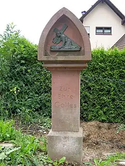 - Julius Roschach: Bildstöcke, Gedenksteine, Wegkreuze, Feldkapellen in Gengenbach. S. 59–60.