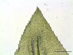Die kräftigen, starren, hellgrünen bis bräunlich-grünen Moospflanzen bilden lockere und oft recht ausgedehnte Rasen. Sie sind häufig bäumchenförmig verzweigt, einzelne Äste sind oft flagellenartig verlängert. Die sparrig abstehenden Blätter sind breit eiförmig-dreieckig bis eiförmig-lanzettlich, spitz und längsfaltig und haben ringsum gesägte und großteils flache Ränder. Alle Blätter haben eine einfache Rippe bis etwa 3/4 der Blattlänge, wobei das Ende der Rippe meist auf der Blattrückseite als Dorn austritt. Die Blattzellen sind in der Blattmitte linealisch und dünnwandig, am Blattgrund kürzer, etwas breiter, mäßig dickwandig und getüpfelt; die Blattflügelzellen sind rechteckig. Stämmchenblätter und Astblätter sind ähnlich, die letzteren etwas schmaler und kleiner.