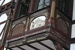 Das Gebäude wurde 1901 für Ernst Henrich und seine Frau Elise als Wohnhaus und Gemeindeamtskasse nach den Plänen des Architekten Carl Seiler errichtet. Über dem massiven Erdgeschoss in Neurenaissanceformen steht ein Fachwerkobergeschoss mit Eckturm und Erker. Dieser ist mit zahlreichen Inschriften und Schnitzereien versehen. Im Inneren sind noch Stuckdecken und Bleiglasfenster im Erker bemerkenswert.
