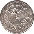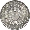Anlässlich der Eidgenössischen Schützenfeste wurden stets Medaillen geprägt. Zwischen 1855 und 1885 entsprachen diese in Durchmesser, Legierung und Gewicht exakt den zirkulierenden Fünffrankenstücken. Sie waren nicht nur als Erinnerungsstücke gedacht, sondern auch als Zahlungsmittel während des Schützenfestes. Weil sie de facto den Wert von fünf Franken auch nach dem Fest beibehielten, gelangten sie auch in den allgemeinen Zahlungsverkehr.