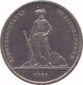 | Freiburg | 1881 | 5 Franken | Silber | Edouard Durussel | 37 mm | 30,000[* 16] |