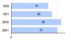 In der Folge veränderte sich die Größe des Ortes kaum, bis 1951 war der Ort lediglich um ein Haus auf 13 Häuser gewachsen. Erst danach wuchs die Ortschaft etwas stärker, sodass der Ort im Jahr 2000 20 Häuser beherbergte. Die Bevölkerungszahlen veränderten sich gleichzeitig hingegen kaum.