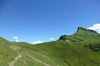 Rund 250 m südlich der Passhöhe befindet sich die Biberacher Hütte.