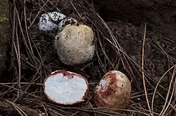 Leucogaster rubescens ist ein nordamerikanischer Vertreter der Gattung. Die Pilze haben einen trüffelartigen Fruchtkörper, dessen Gleba eine mehr oder weniger deutlich wabenartige Struktur hat. |