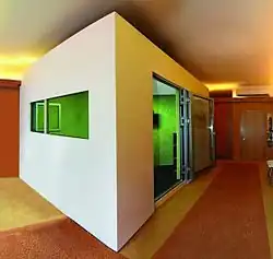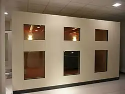 Die Schallschutzkabine steht frei im umgebenden Raum und berührt weder Wände noch Decken („schwebendes“ Raum-in-Raum-System). Der eigene, aus mehreren schallisolierenden Schichten bestehende Boden minimiert die Übertragung des Körperschalls.