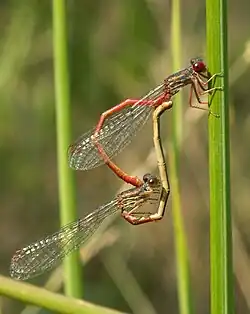 Ceriagrion tenellum, Männchen + Weibchen (f. "typica") | ||||||||||||