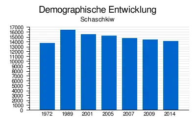 Die Bevölkerung in Schaschkiw ist seit der Bekanntmachung 1972 leicht gestiegen und liegt 2013 bei 14.485.