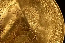 - ↑ a b Morten Axboe: The World’s largest Gold Bracteate: A brief presentation of the Migration Period gold hoard from Vindelev, Denmark. In: The European Archaeologist. Band 74, 2022, S. 54–62; S. 60 (englisch).