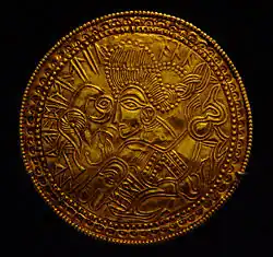 - ↑ a b Morten Axboe: The World’s largest Gold Bracteate: A brief presentation of the Migration Period gold hoard from Vindelev, Denmark. In: The European Archaeologist. Band 74, 2022, S. 54–62; S. 60 (englisch).