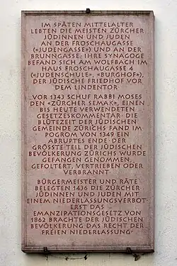 - ↑ a b Die spätmittelalterlichen Wandmalereien im Haus «Zum Brunnenhof» in Zürich und ihre jüdischen Auftraggeber, S. 21.