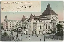 Das Schauspielhaus in Frankfurt am Main war ein 1899 bis 1902 errichteter Theaterbau am Gallustor. Der historistische Bau des Berliner Theaterarchitekten Heinrich Seeling „signalisierte mit exotisch unterfütterter Neorenaissance und einem freien Zitat der Berliner Reichstagskuppel staatstragende Bedeutung, während Jugendstildetails dezent den Willen zur Moderne andeuteten“.[1] In den 1920er Jahren wurde es ein Zentrum des expressionistischen Theaters in Deutschland und zur „Talentschmiede für Autoren und Schauspieler“.[2] Bei einem Luftangriff auf Frankfurt wurde das Schauspielhaus 1944 im Inneren teilweise zerstört, äußerlich blieb die Fassade nahezu vollständig erhalten.