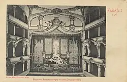 - ↑ Dieter Bartetzko: Man will doch nur spielen. Die unendliche Baugeschichte der Städtischen Bühnen Frankfurt. In: Städtische Bühnen Frankfurt am Main GmbH (Hrsg.): Ein Haus für das Theater. 50 Jahre Städtische Bühnen Frankfurt am Main. Henschel, Leipzig 2013, ISBN 978-3-89487-732-3, S. 272. Nach anderen Darstellungen handelte es sich um eine Francofurtia, z. B. Sabine Hock: Ein reizvolles und vornehmes Haus. 16. Mai 2018, abgerufen am 5. Februar 2021.