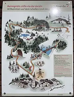 Der Ursprung der Geschichte liegt in Guarda, einem Dorf im Unterengadin. Das Haus Nr. 51 an der Westseite der Plazzetta zuos-cha (Rätoromanisch ‹Schmutziges Plätzchen›) diente dem Bündner Künstler Alois Carigiet als Vorbild für das Elternhaus des kleinen Ursli. Die stattlichen Unterengadiner Häuser sind bekannt für ihre dicken Mauern, die mit Bildern und Sgraffiti bemalt sind. Die kleinen Fenster und die grossen verzierten Holztore sind noch heute typische Merkmale für Engadinerhäuser. Guarda ist heute ein Dorf mit einem Ortsbild von nationaler Bedeutung.