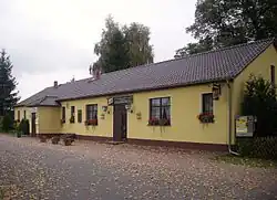 Aus der ehemaligen Einklassenschule, in welcher früher bis zu 55 Kinder in einem Raum unterrichtet wurden, entstand in der DDR der Sitz des Rates der Gemeinde und seit 1997 beherbergt sie die Sammlung der Heimatstube. Aus dem Krug wurde zeitweise ein Konsum-Verkaufsstelle,[7] dann Kulturraum der LPG, heute ist er das Gasthaus „Zum Schlaubetal“. Abgerundet wird dieses Gebäudeensemble von dem Nachbau einer alten Jagdhütte, dem Jäger Hauß von 1746.
