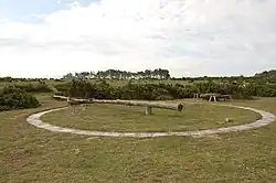 Die als Windmühle errichtete Scheuermühle wurde 1905 von Zimmerleuten aus Böda gebaut. Sie diente dazu, den in der Nähe gewonnenen Kalkstein plan zu schleifen. Die so gewonnenen glatten Kalksteinplatten dienten als Steine zum Bau von Fußböden und waren ein typisches Produkt der Kalksteinindustrie auf Öland. Der Bau von windgetriebenen Scheuermühlen hatte auf Öland etwa 1850 eingesetzt und ersetzte die zuvor betriebenen Scheuerwanderungen, bei den mit Hilfe der Kraft von Ochsen oder Pferden an einem Göpel die kreisförmig ausgelegten Kalksteinplatten bearbeitet wurden. Durch den Einsatz von Windenergie ließ sich der Bearbeitungsgang von etwa einer Woche auf einen Tag verkürzen. Neben der Scheuermühle ist ein Göpel für die Scheuerwanderung zu sehen.