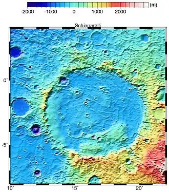 Schiaparelli ist ein über 450 km großer Krater am Äquator des Planeten Mars. Er ist einer von dessen größten Einschlagkratern und liegt beim Sabarus Sinus zwischen zwei Landschaften, welche im 19. Jahrhundert die Namen Arabia Terra und Noachis Terra erhielten.
