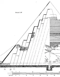 - ↑ R. Stadelmann: Die ägyptischen Pyramiden. von Zabern, Mainz 1997, S. 51, ISBN 3-8053-1142-7.