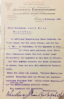 Am 10. September 1883 wurde Schiedmayer zum Königlich Württembergischen Hoflieferanten ernannt.[2]