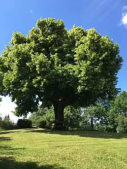 Blasonierung: „In Silber auf grünem Berg eine grüne Linde, der Berg belegt mit einem geflochtenen silbernen Henkelkorb.“[19]