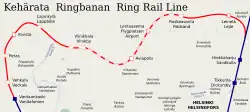 - Helsinki–Flughafen–Tikkurila (kehärata/ringbanan, „Ringbahn“, im Linienschema gelb), 15 km (22 min). Eigene Gleise auf gesamter Strecke. Diese Bahn wurde im Juli 2015 durch die 18 km lange Ringbahn (s. u.) zum Bahnhof Hiekkaharju an der Hauptbahn verlängert.