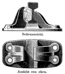 Mit dem Aufkommen der Breitfuß- bzw. Vignolschiene mussten neue Befestigungsmittel eingeführt werden. Diese werden nicht mehr als Schienenstuhl bezeichnet, sondern entsprechend ihrer Bauart als Leisten-, Haken oder Rippenplatten, letztere beispielsweise beim Oberbau K. Die Bauformen sind dabei sehr unterschiedlich, sie sind nicht nur auf die Befestigungsart (Schrauben, Klammern usw.) und das Schwellenmaterial (Holz, Stahl oder Beton) abgestimmt, sondern je nach Anforderung auch auf besonders exakte Spurhaltung, nachträgliche Korrekturmöglichkeiten oder besonders gute Geräuschdämmung.