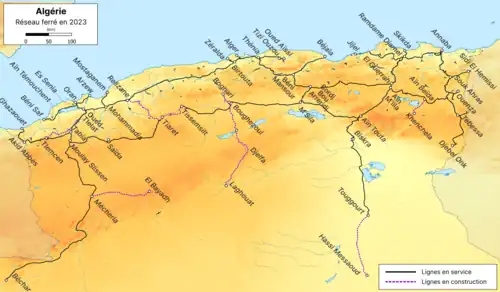 Innerhalb Algeriens bedient die SNTF zurzeit etwa 200 Bahnhöfe.[9] International gibt eine Zugverbindung nach Tunis in Tunesien.[10][11]