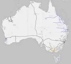 Schon in den 1890ern hatte jede australische Kolonie mindestens eine Bahnstrecke und in den bevölkerungsreichen Kolonien an der Ostküste unterstützten Strecken vom Hinterland zu den Seehäfen den Export von Rohstoffen und landwirtschaftlichen Erzeugnissen. Zu seiner Glanzzeit in den 1920ern und 1930er Jahren war das australische Schienennetz circa 45.000 Kilometer lang – mit dem Aufstieg von Luft- und Straßenverkehr in Australien schrumpfte es. Anfang der 1990er Jahre hatte es noch 36.000 Kilometer.[2] Heute hat es eine Länge von 38.445 Kilometern.[3]